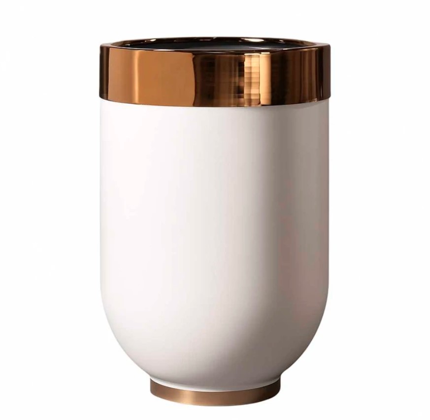 گلدان پلیمری استوانه ای به همراه حلقه طلایی براق آبکاری شده
