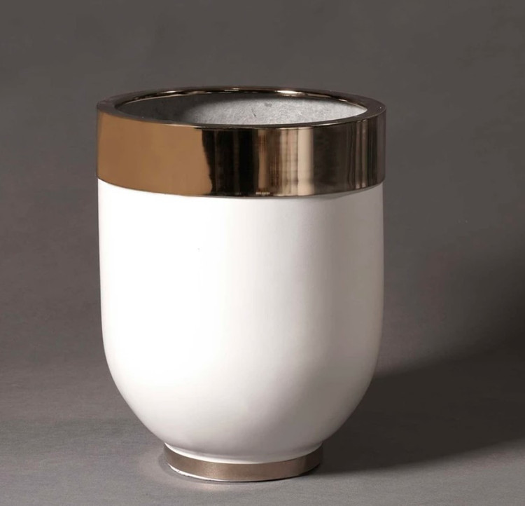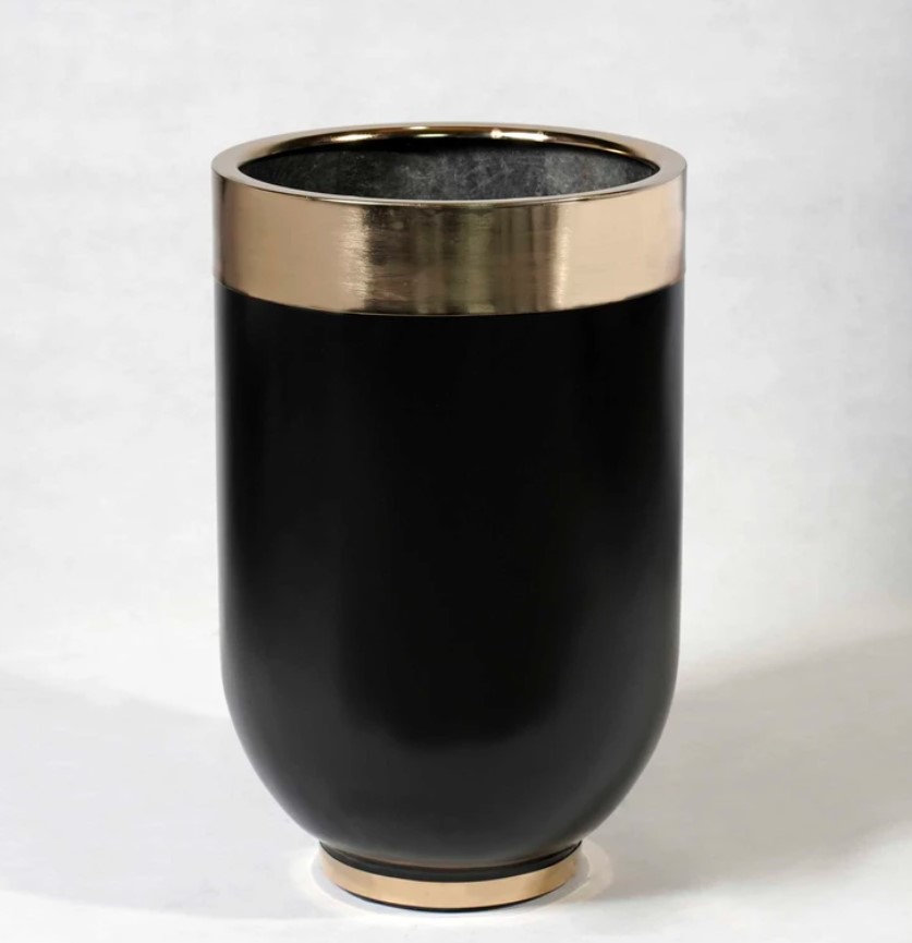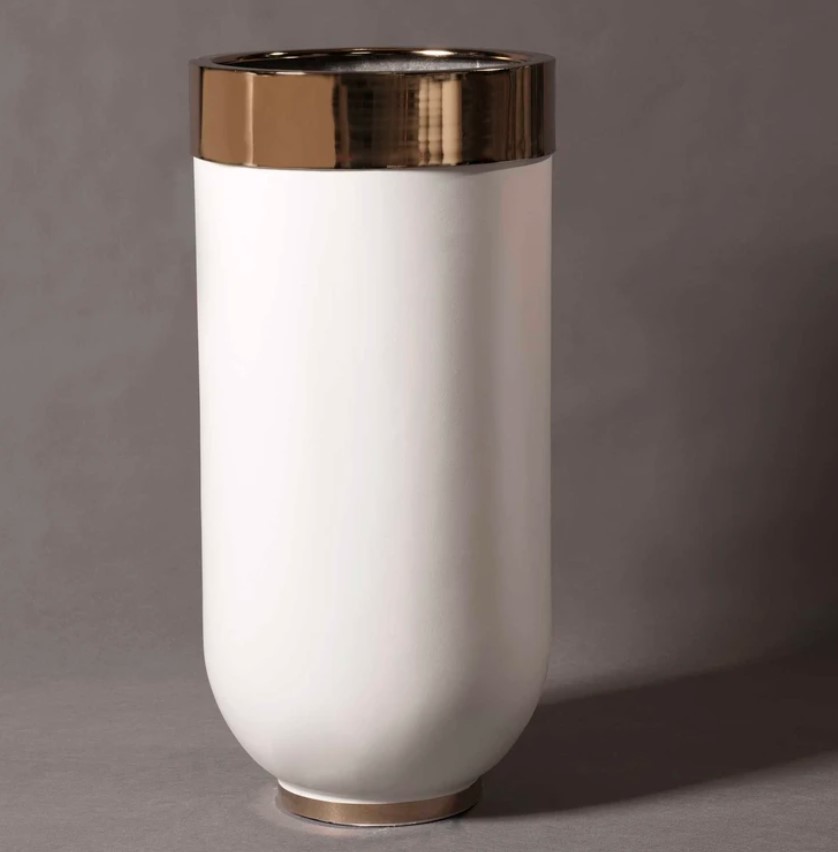 لبه گلدان فلز آبکاری شده و براق می باشد.