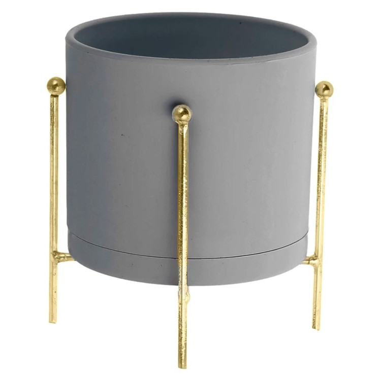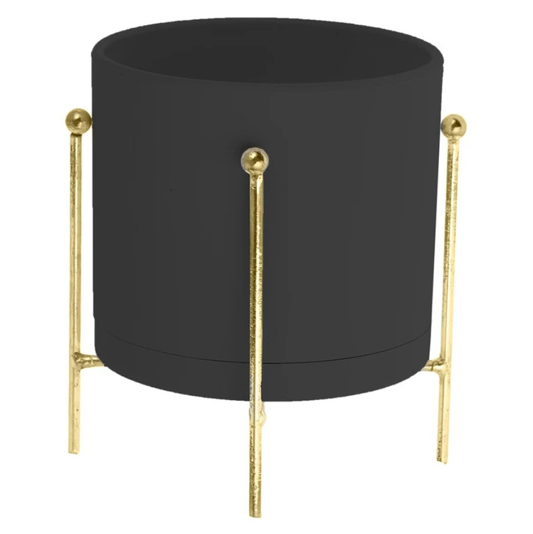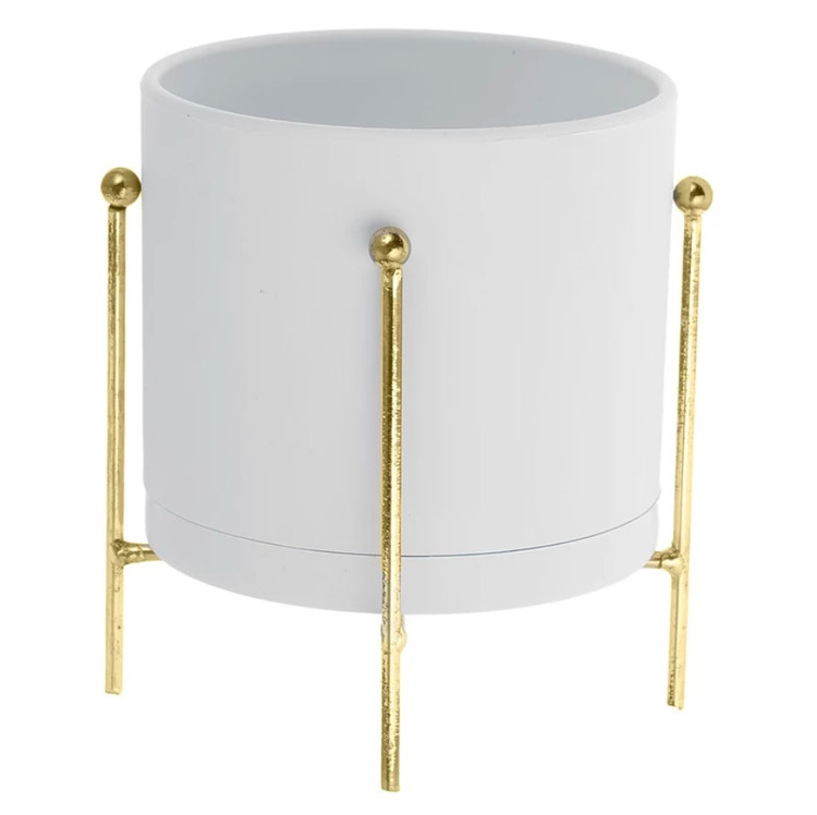 گلدان پلیمری استوانه ای به همراه پایه گلدان طلایی براق آبکاری شده سایزبندی
