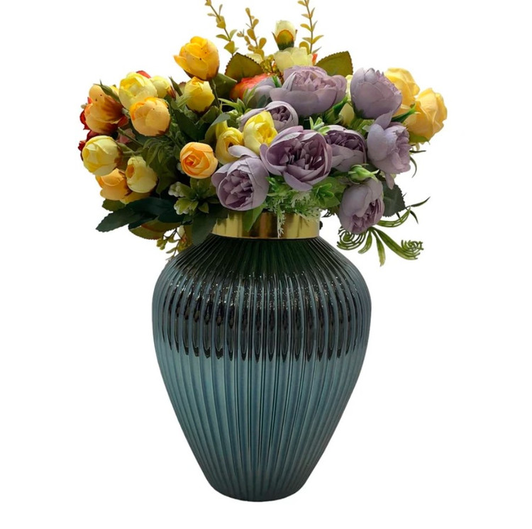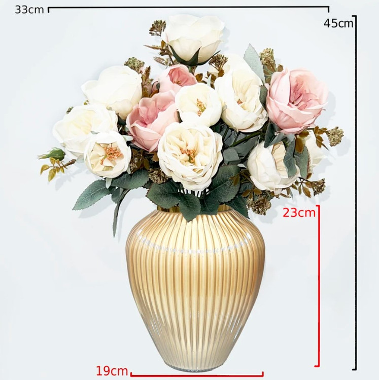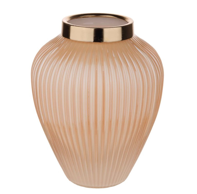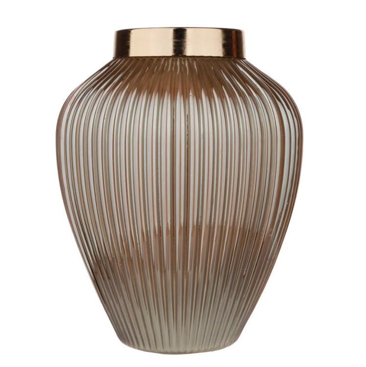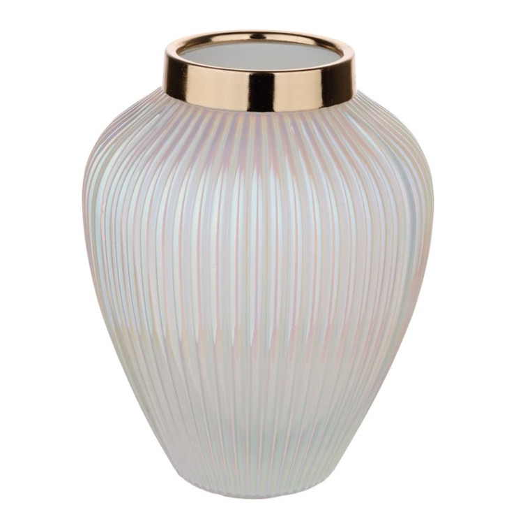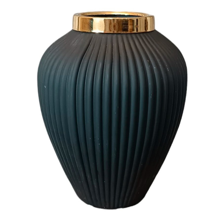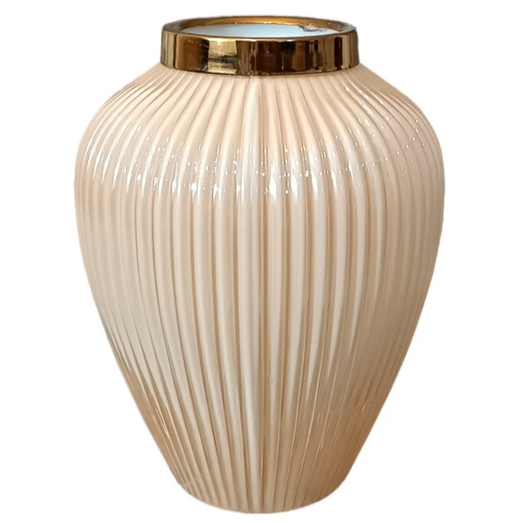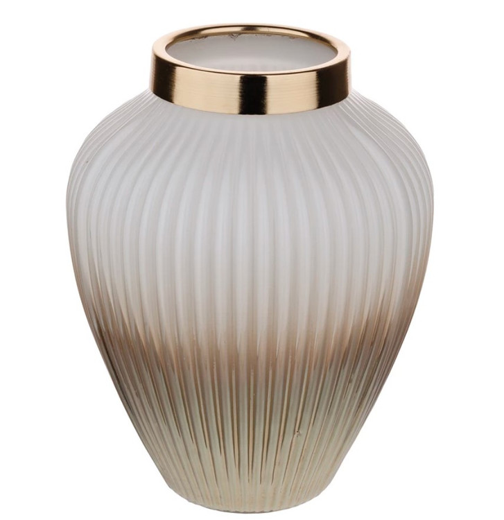 این گلدان دکوری دارای طرح شیاری می باشد. این گلدان ها دارای طوقه طلایی براق و با کیفیت می باشند. برای نگهداری گل طبیعی و مصنوعی و همچنین به عنوان دکوری بسیار مناسب می باشد .