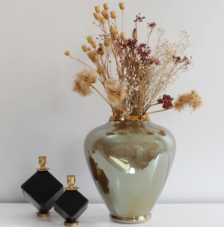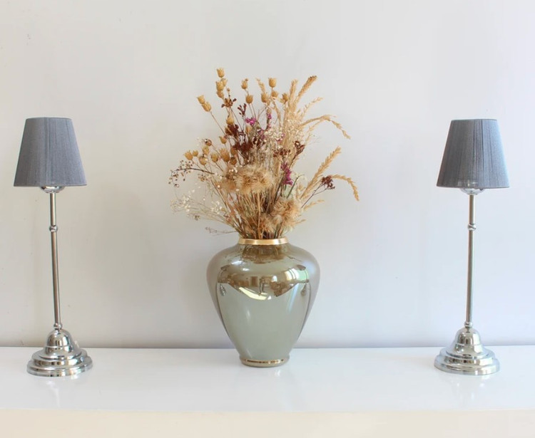 این گلدان ها دارای طوقه طلایی براق و با کیفیت می باشند. برای نگهداری گل طبیعی و مصنوعی و همچنین به عنوان دکوری بسیار مناسب می باشد .