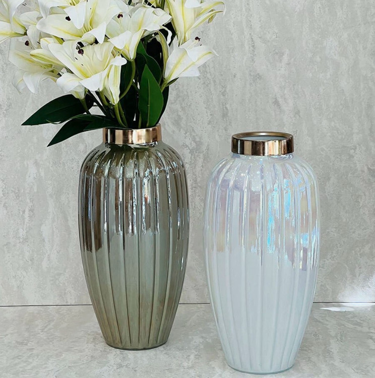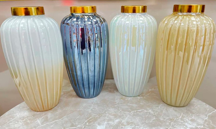 این گلدان ها دارای طوقه طلایی براق و با کیفیت می باشند. برای نگهداری گل طبیعی و مصنوعی و همچنین به عنوان دکوری بسیار مناسب می باشد .