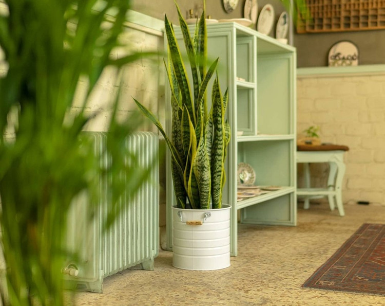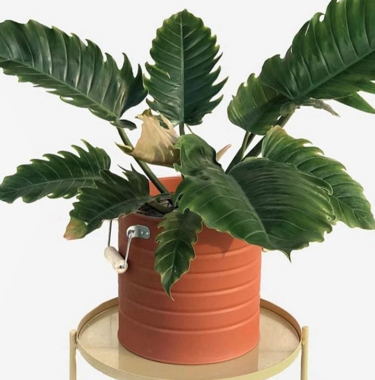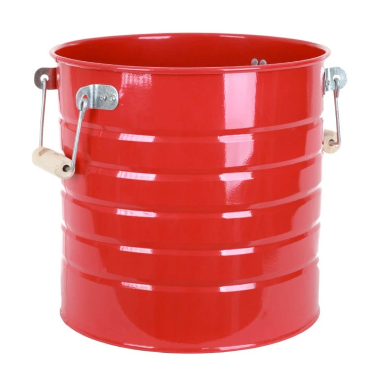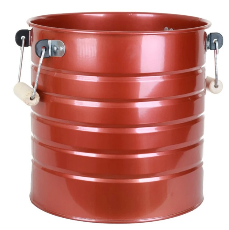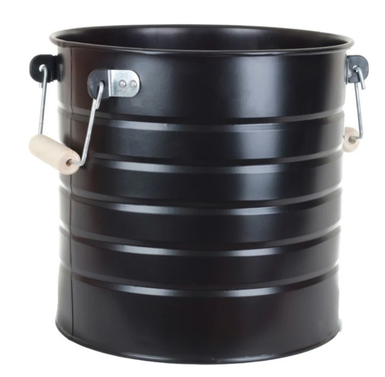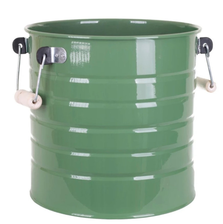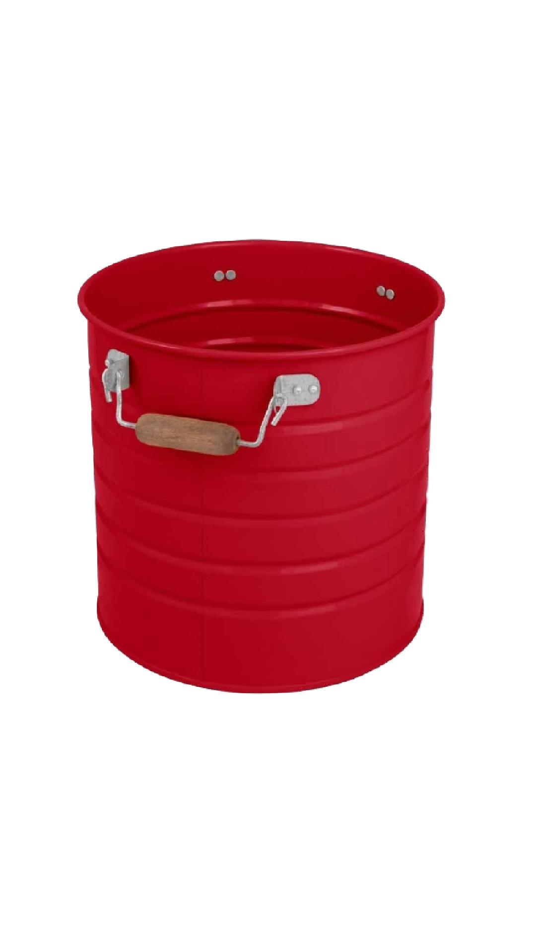 گلدان فلزی لاین دسته چوبی گالوانیزه ارتفاع 30 سانتیمتر قطر 30 سانتیمتر