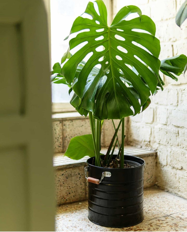 گلدان فلزی لاین دسته فلزی گالوانیزه ارتفاع 40 سانتیمتر قطر 30 سانتیمتر