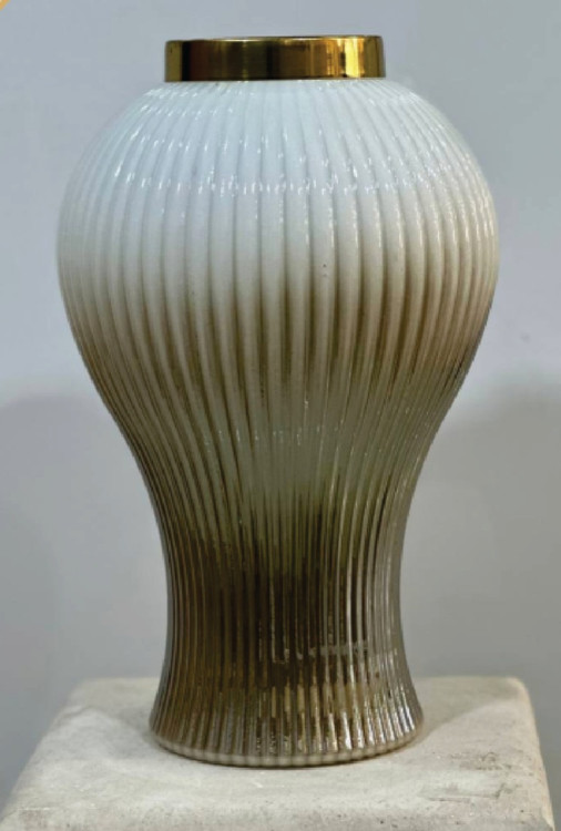 این گلدان ها دارای طوقه طلایی براق و با کیفیت می باشند. برای نگهداری گل طبیعی و مصنوعی و همچنین به عنوان دکوری بسیار مناسب می باشد .