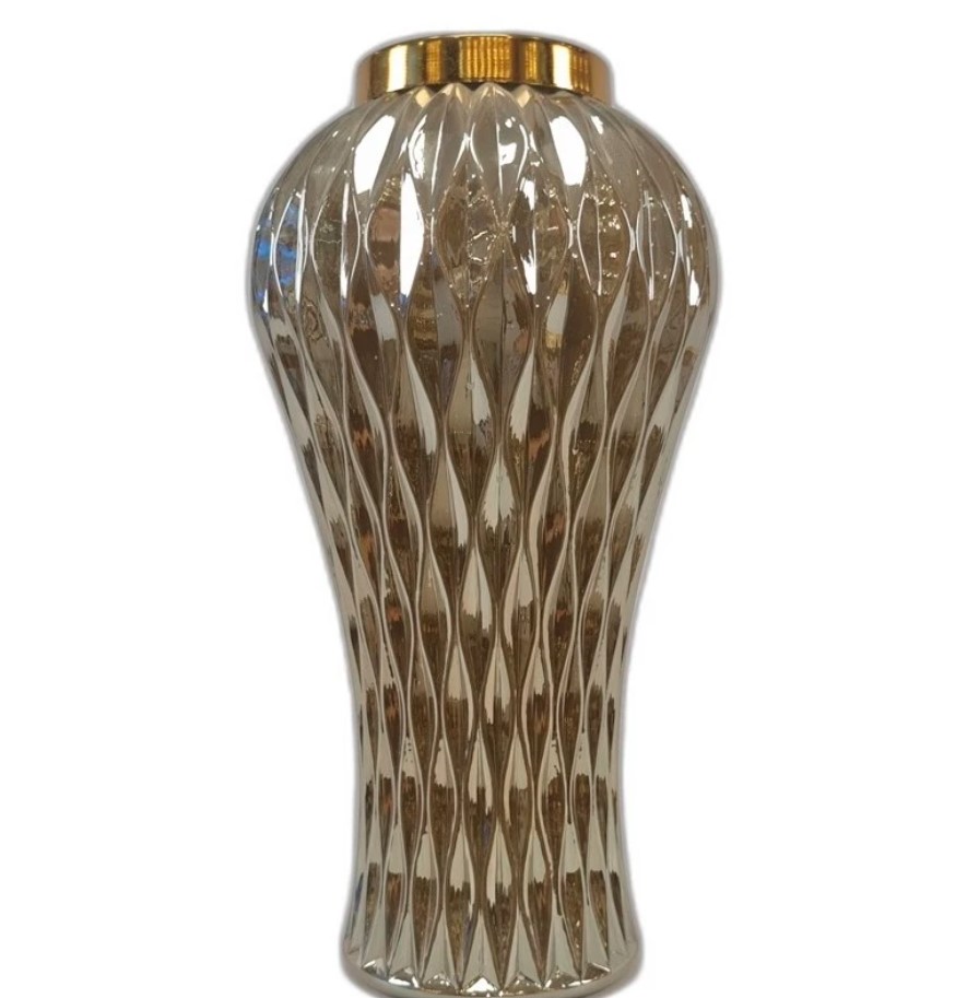 این گلدان ها دارای طوقه طلایی براق و با کیفیت می باشند. برای نگهداری گل طبیعی و مصنوعی و همچنین به عنوان دکوری بسیار مناسب می باشد .
