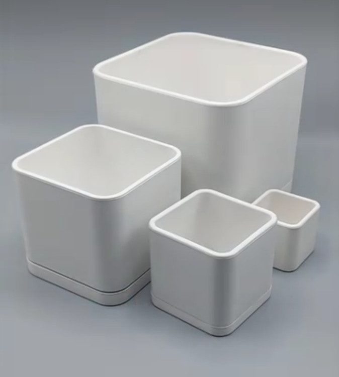 گلدان پلیمری مکعبی دارای زیرگلدانی و زهکشی