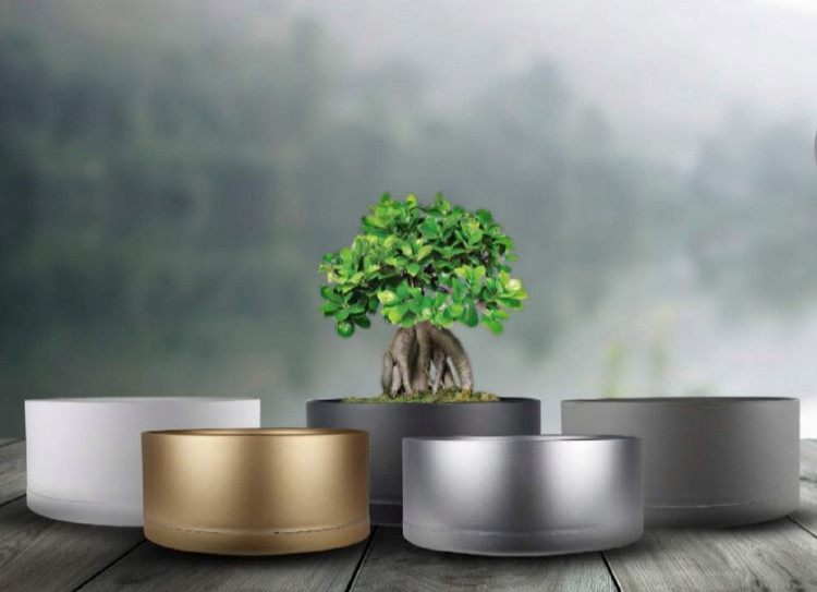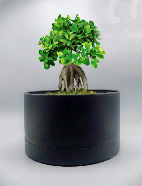 گلدان پلیمری استوانه کوتاه بنسای دارای زیرگلدانی و زهکشی