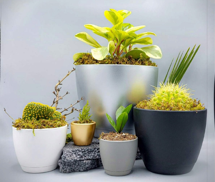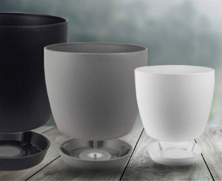 گلدان پلیمری گرد منحنی دارای زیرگلدانی و زهکشی سایزبندی