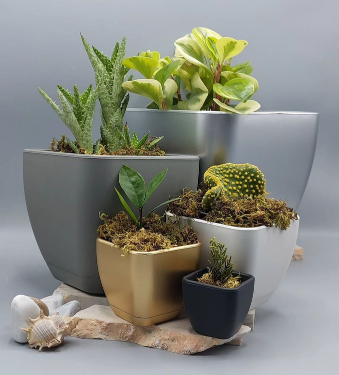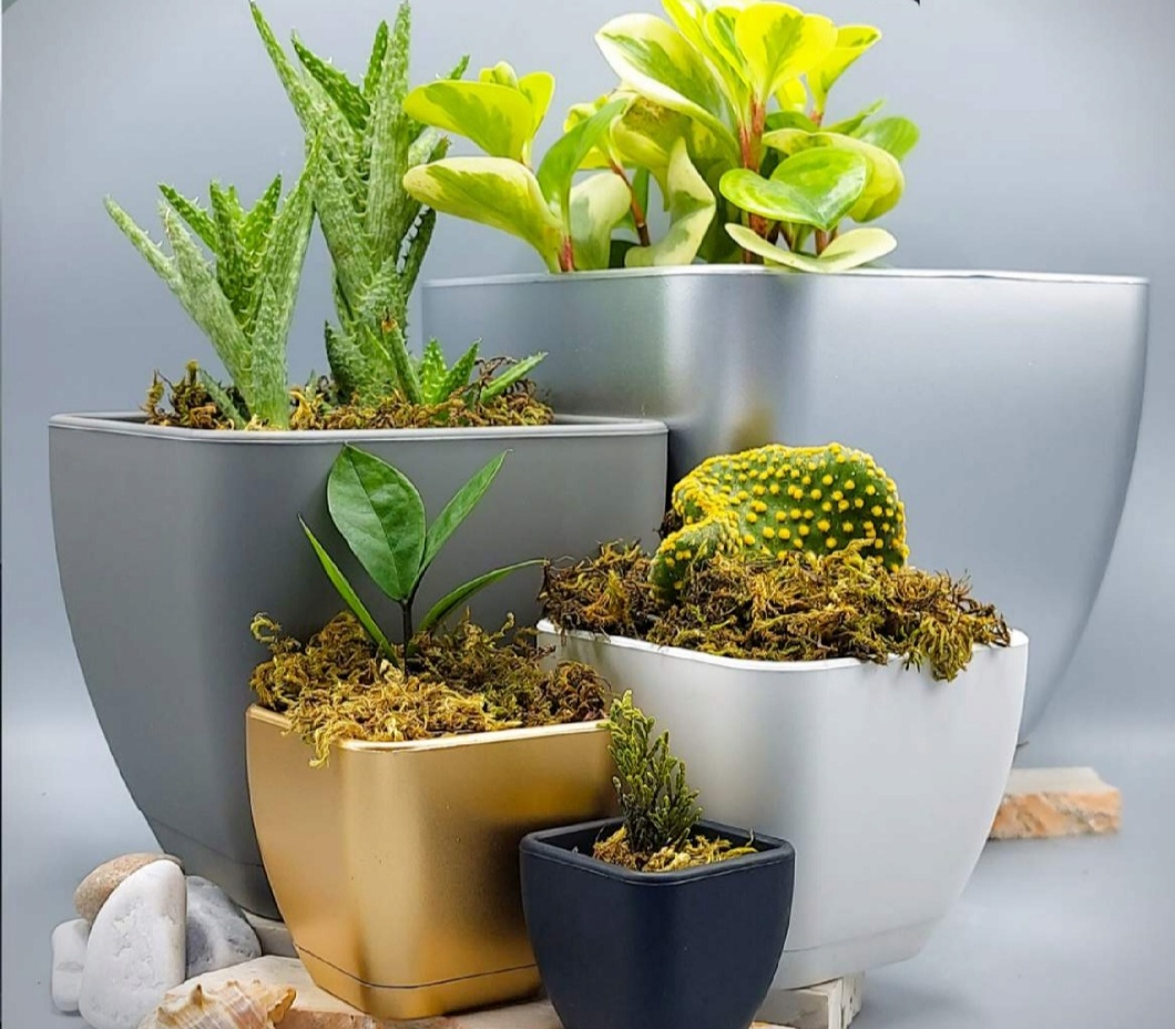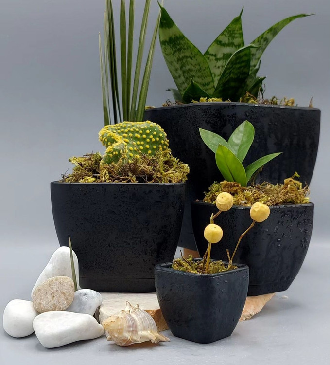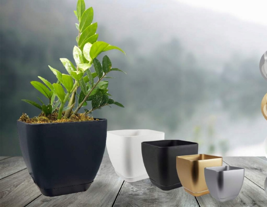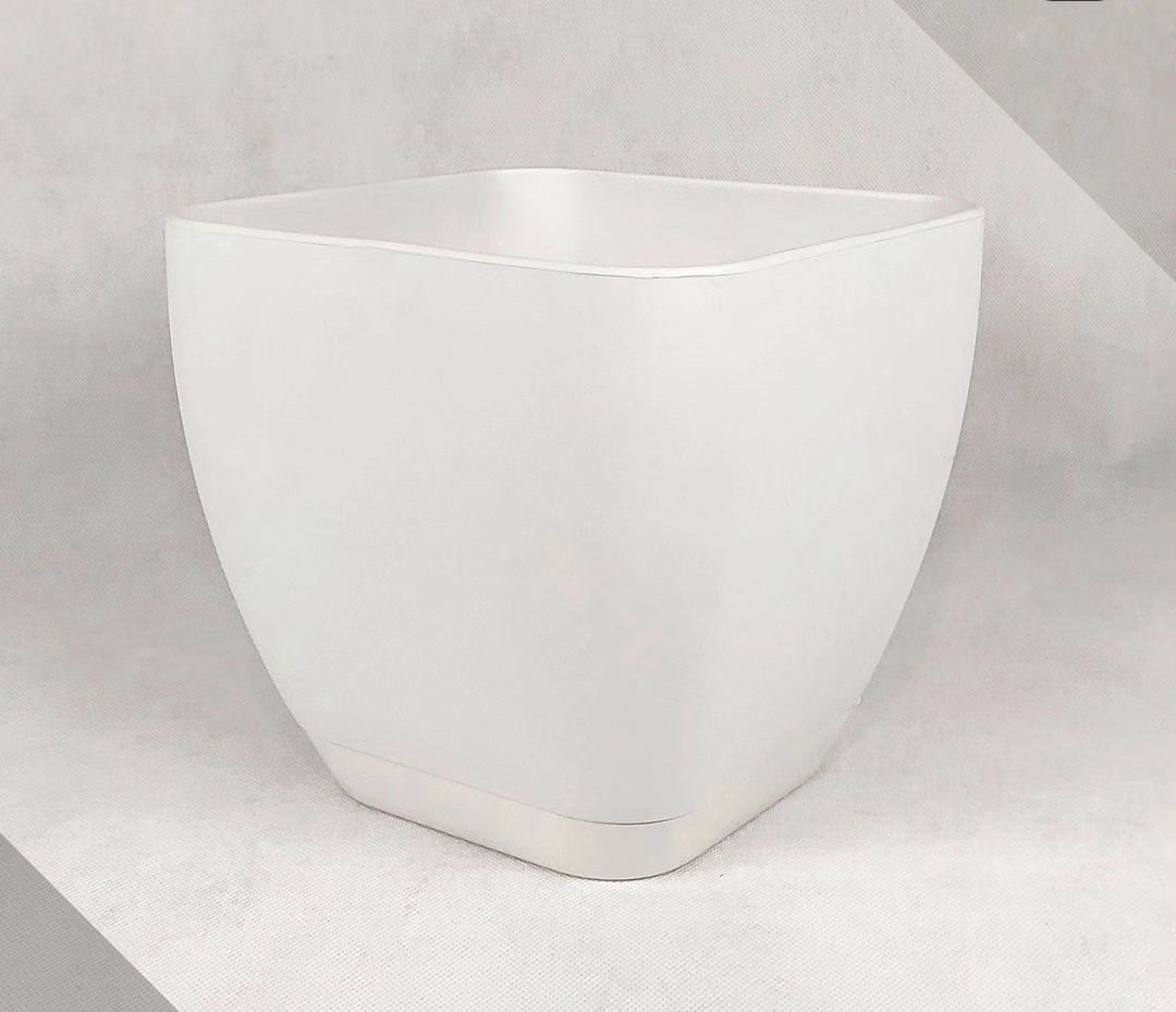 گلدان پلیمری مربع منحنی دارای زیرگلدانی و زهکشی سایزبندی