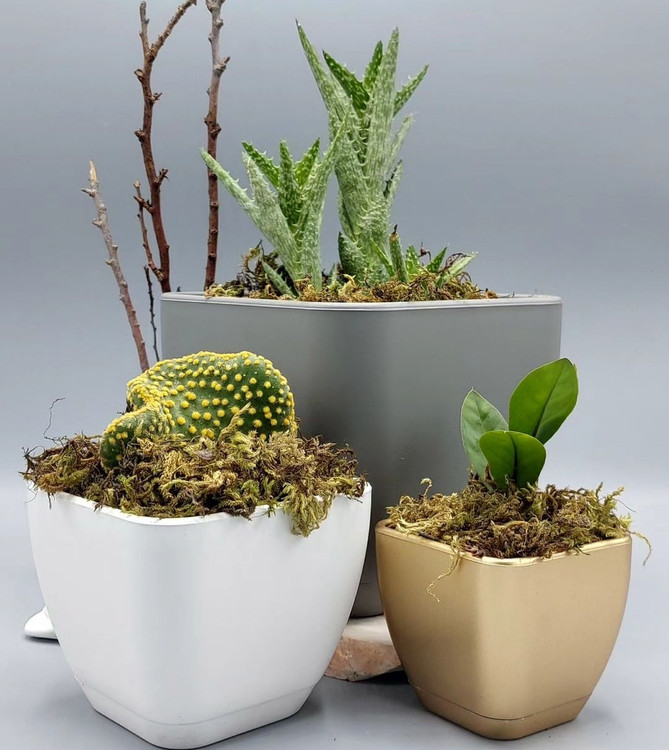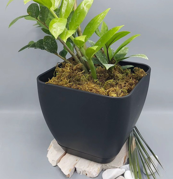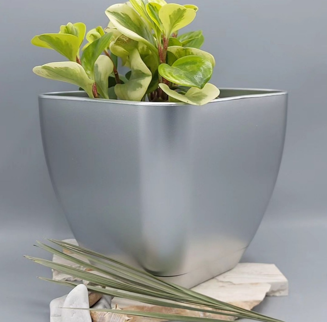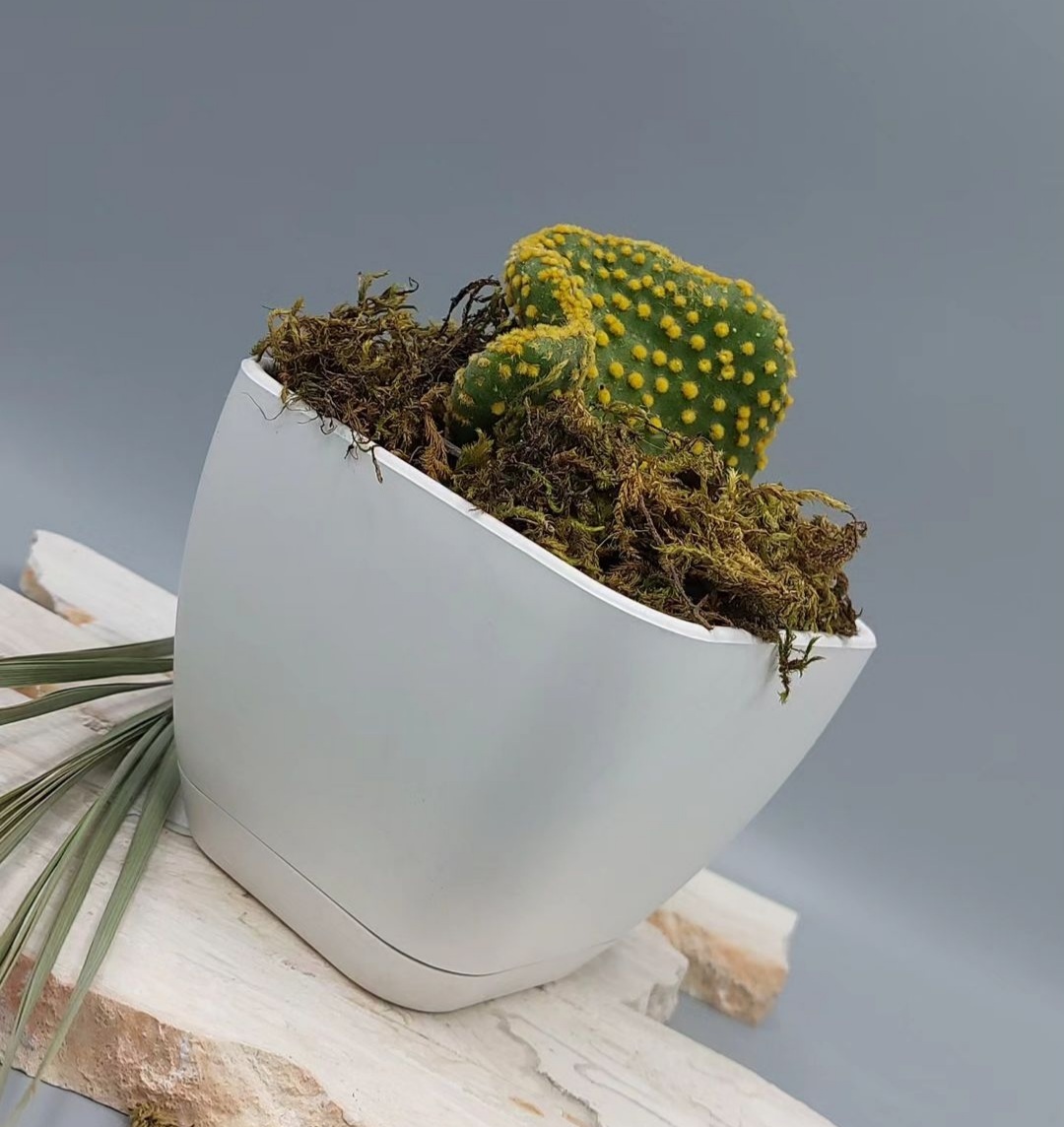 گلدان پلیمری مربع منحنی دارای زیرگلدانی و زهکشی سایزبندی